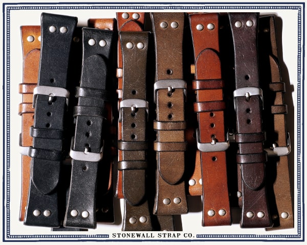 特筆すべきは、あえて拙く粗雑なつくりにすることで生産時間を短縮、さらには革本来のシワや傷が入った部位を製品の魅力として活かすことで、大幅なコストダウンが実現した点です。 ストーンウォールの耐久性と、素材はそのままに、ヴィンテージの魅力を最大限に引き出した、コストパフォーマンスにも優れたウォッチストラップです。