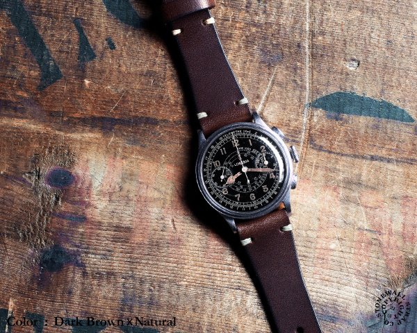 形は第二次世界大戦時にアメリカ軍で採用されていたウォッチストラップをベースに、 貼り合わせのない一枚革を総手縫いで仕立てています。