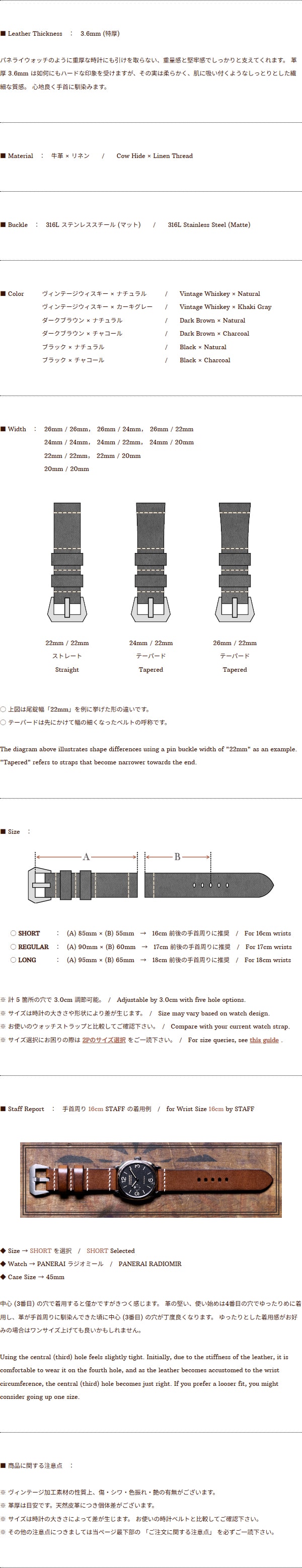 STONEWALL 最厚 3.6ミリ の特厚革を使用したパネライ専用ウォッチストラップ。 貼り合わせの無い一枚革を、総手縫いで仕立てています。